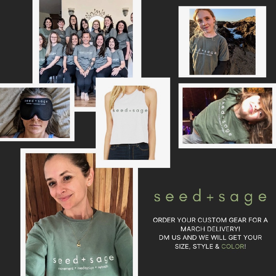 seed+sage Store Now Open! We’ve been getting questions about sweatshirts, meditation masks, kids t-shirts, tanks, and more! We’re putting together an order and delivering items this month. Here’s what we have available (get in touch for specific styles/sizing/payment):